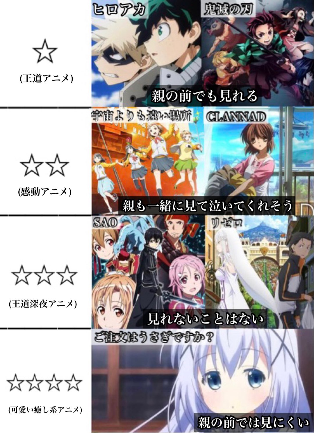 とあるん 親の前でアニメを見る時の難易度一覧 T Co Qyjesksqmx Twitter